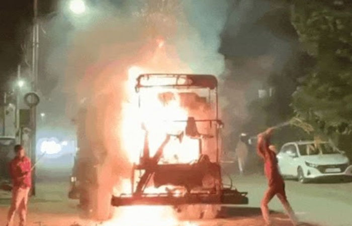 પોલો ગ્રાઉન્ડ નજીક મોડી રાત્રે ડામરના ટેન્કરમાં આગ લાગતા નાસભાગ મચી