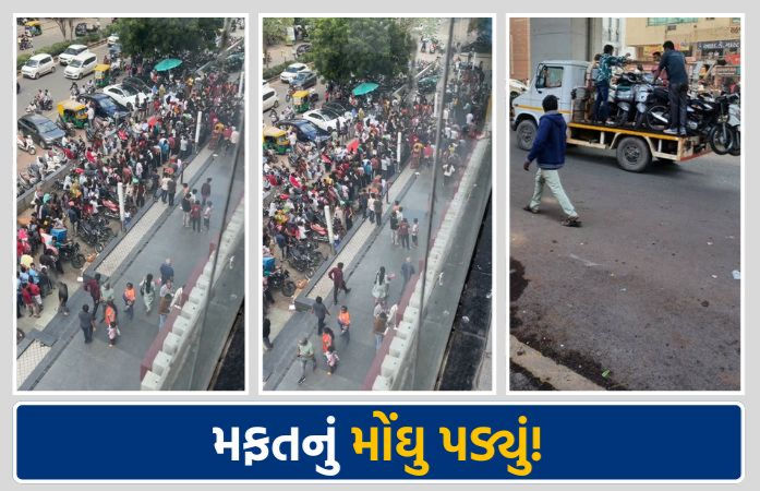 અમદાવાદમાં ફ્રી પિત્ઝા માટે પડાપડી, લોકોએ આડેધડ પાર્ક કરેલા વાહનો ટ્રાફિક પોલીસ ટો કરી ગઈ