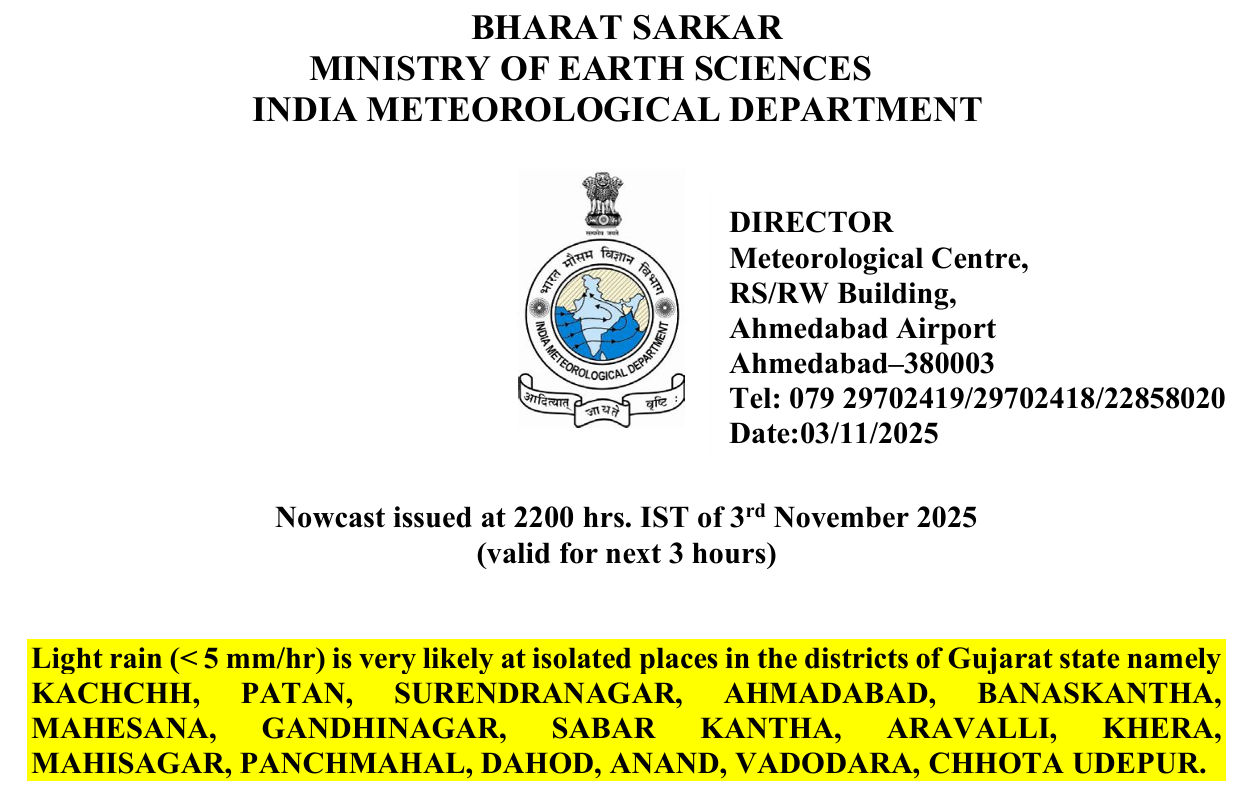 આવતીકાલે ગુજરાતના 15થી વધુ જિલ્લામાં હળવાથી મધ્યમ વરસાદની આગાહી