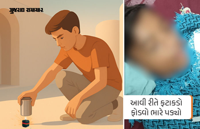 Panchmahal News : દિવાળીના તહેવારની પૂર્વસંધ્યાએ ફટાકડા ફોડવામાં અખતરા અને ગંભીર બેદરકારીના કારણે કરુણ ઘટના સામે આવી છે. પંચમહાલ જિલ્લાના ગોધરા તાલુકાના બગીડોર અંબાલી ગામે એક કિશોરને ફટાકડાનો અખતરો ભારે પડ્યો છે. અનમોલ નામનો, ધોરણ 10માં અભ્યાસ કરતો કિશોર પોતાના ઘર આંગણે એક સુતળી બોમ્બ સળગાવીને તેની ઉપર સ્ટીલનો ગ્લાસ મૂકીને બોમ્બ ફૂટવાની ખાતરી કરવાનો પ્રયાસ કરી રહ્યો હતો.